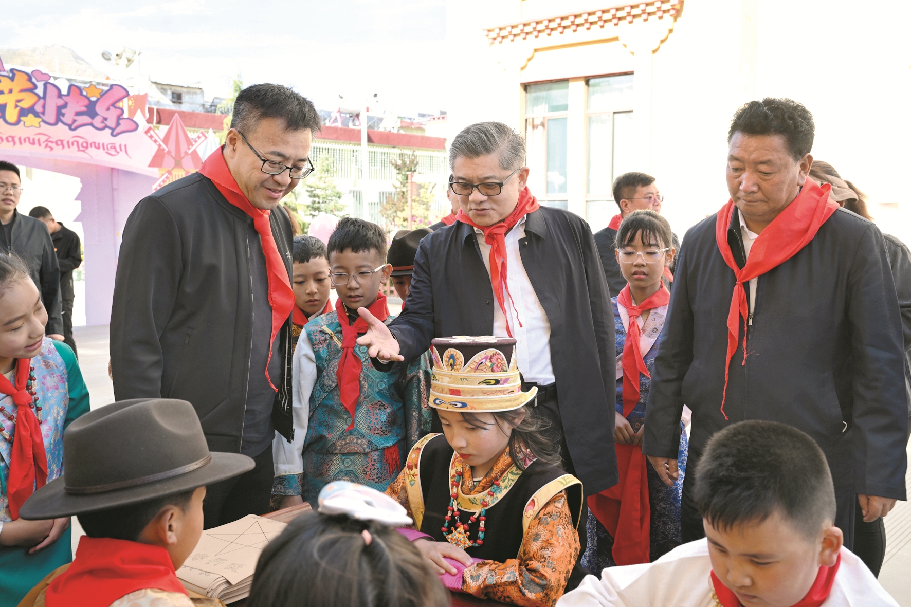 夏日的拉薩陽光明媚,操場上,孩子們正在開展“六一”兒童節(jié)文藝匯演活動,王強(qiáng)一行興致勃勃地觀看演出,對孩子們積極向上、充滿活力的精彩表演連連鼓掌,向孩子們送去了節(jié)日的祝福,希望大家牢記習(xí)近平總書記的囑托,勤奮學(xué)習(xí)、掌握本領(lǐng),努力成為新時代社會主義建設(shè)者和接班人。希望廣大教師要牢記為黨育人、為國育才使命,引導(dǎo)他們扣好人生第一??圩?,努力培養(yǎng)有理想、有道德、有文化、有紀(jì)律的時代新人。