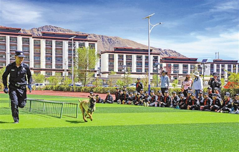 近日,由共青團(tuán)日喀則市委員會挑選的日喀則市區(qū)50名優(yōu)秀少先隊員,來到日喀則邊境管理支隊營區(qū)參加“星星火炬映黨旗 藍(lán)色警營促成長”主題教育活動。