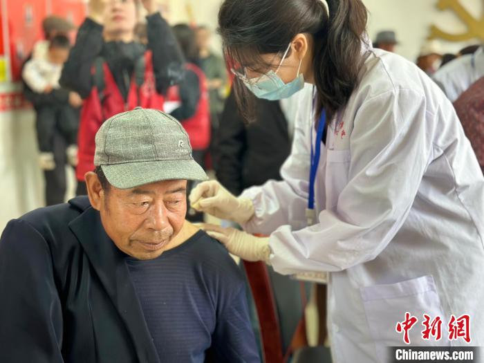 圖為長(zhǎng)沙醫(yī)學(xué)院“長(zhǎng)小團(tuán)”赴紅崖溝村義診服務(wù)現(xiàn)場(chǎng)?!⒀蟆z