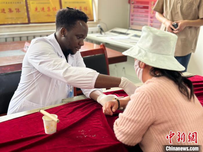 圖為贊比亞留學(xué)生為紅崖溝村村民診療?!⒀?攝
