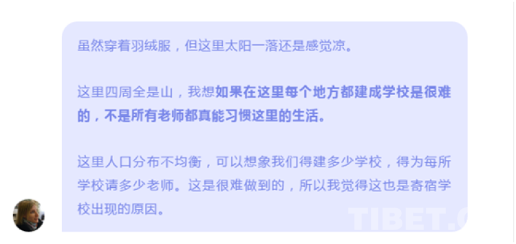 學(xué)生們在學(xué)習(xí)漢語、英語等不同科目的同時,學(xué)校對藏族傳統(tǒng)文化的存續(xù)依然不遺余力,給了孩子們拓展視野的鑰匙,讓他們有機會探索更寬廣的世界,這些不就是教育的意義嗎?何來“同化”?