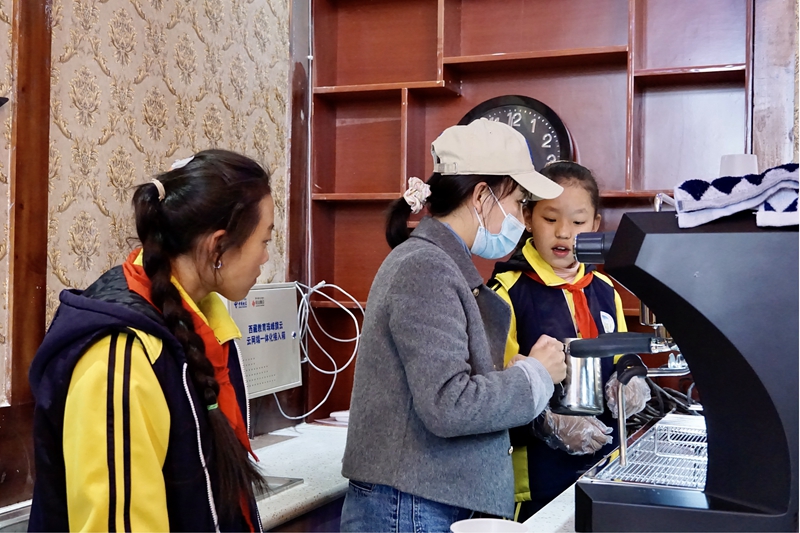 13歲的拉巴卓瑪和15歲的益西措姆正是體驗(yàn)職教班咖啡課的學(xué)生,她們相較于其他學(xué)生擁有更強(qiáng)的專注力和動手能力,一天便能熟練操作咖啡機(jī)。在帶教老師次旦卓嘎看來,“她們雖然是學(xué)困生,但其實(shí)看上去和普通小孩沒有什么不同?!?/p>