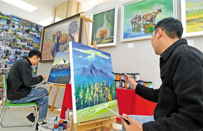 圖為西藏職業(yè)技術(shù)學(xué)院的學(xué)生在畫油畫。記者 王敏 攝