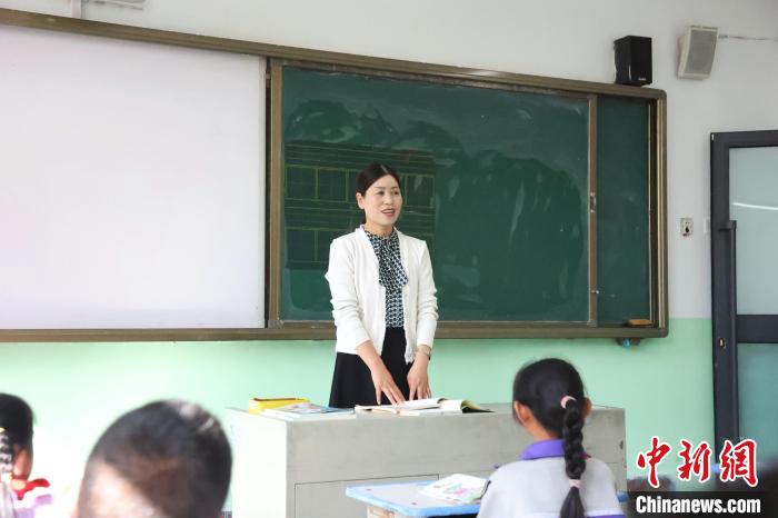 圖為張雪蓮在西寧市湟中區(qū)多巴鎮(zhèn)丹麻寺小學(xué)的教室內(nèi)上課。張?zhí)砀?攝