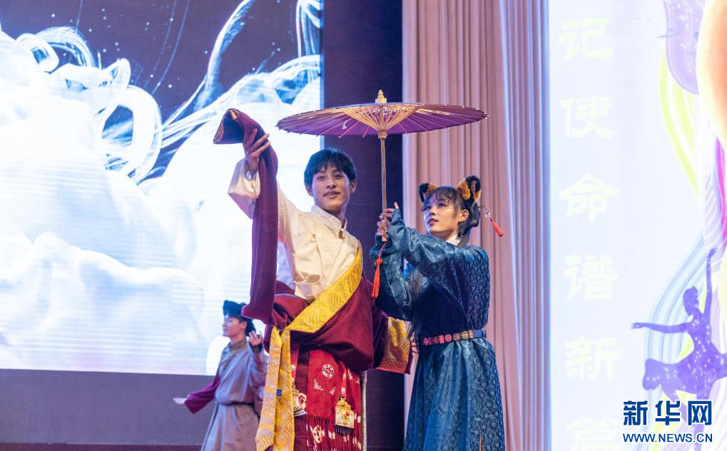 開幕式現場學生們正在表演服裝秀節(jié)目(9月21日攝)。丁增尼達 攝