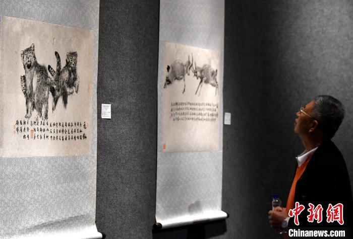 圖為觀眾正在欣賞展覽中的美術(shù)作品。李林 攝