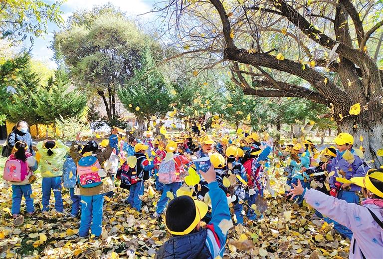 圖為該校一年級(jí)學(xué)生在羅布林卡公園觀賞秋景。記者 格桑倫珠 攝