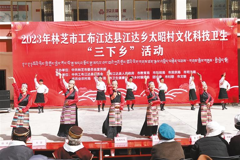 近日,由林芝市委宣傳部牽頭在工布江達縣江達鄉(xiāng)太昭村聯(lián)合舉辦林芝市文化科技衛(wèi)生“三下鄉(xiāng)”活動。林芝市、工布江達縣兩級文藝工作者為現(xiàn)場群眾送上的《續(xù)寫盛世》《栢榭》等精彩節(jié)目和哈呼曲藝社帶來的語言類節(jié)目《學習國家通用語言文字》,深受群眾喜愛,節(jié)目中還穿插黨的二十大精神等相關(guān)知識問答環(huán)節(jié),在場群眾積極參與,踴躍回答,現(xiàn)場氣氛十分活躍。