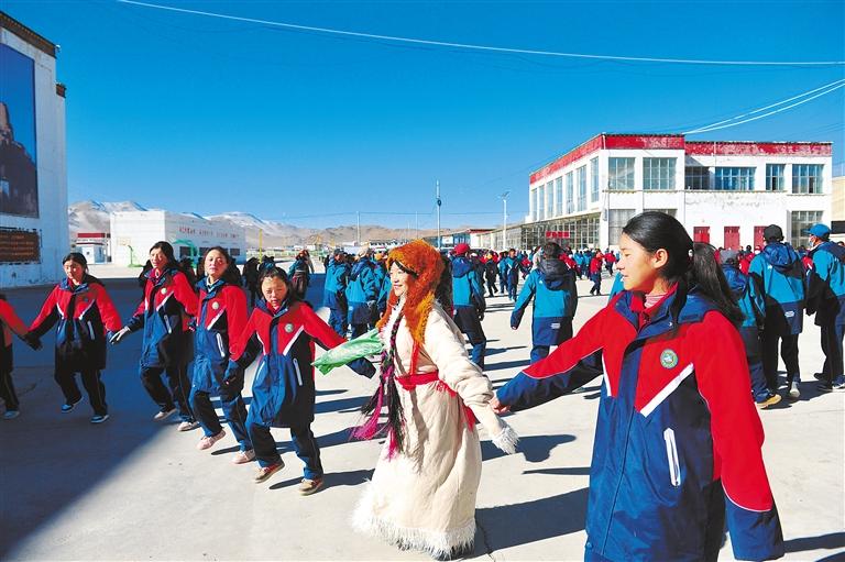 措勤縣中學(xué)黨建辦副主任次旺曲珍告訴記者,將非遺“磁石帕卓”改編成“磁石彈舞”課間操,主要就是以一種新潮的形式讓學(xué)生在健身的同時(shí),充分感受非遺文化魅力。這不僅豐富了學(xué)生的課間活動(dòng),鍛煉了學(xué)生身體、培養(yǎng)了民族情感、增強(qiáng)了民族自信心,而且使措勤縣特有的非遺文化得到了傳承。