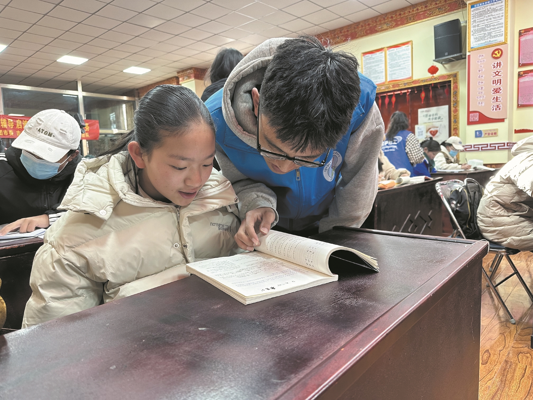 寒假期間,不少家長因為沒辦法輔導(dǎo)孩子的日常學(xué)習(xí)而感到苦惱。前不久,吉崩崗街道聯(lián)合市團(tuán)委、摯善公益團(tuán)隊在熱木其社區(qū)居委會里設(shè)立了一個臨時“教室”,為轄區(qū)孩子們提供為期一個月的課業(yè)輔導(dǎo)志愿服務(wù)?,F(xiàn)場,返鄉(xiāng)大學(xué)生志愿者們變身為一名名“小老師”,耐心幫助孩子們解決學(xué)習(xí)難題,輔導(dǎo)的課業(yè)涵蓋了小學(xué)、初中的所有科目。除了教作業(yè),志愿者還組織孩子們開展演講比賽、書法比賽等活動,充實了孩子們的假期生活。