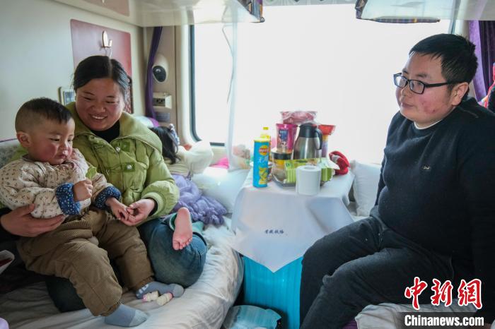 2月1日,張彩霞一家在拉薩開往上海的Z166次列車上?!≈行律缬浾?江飛波 攝
