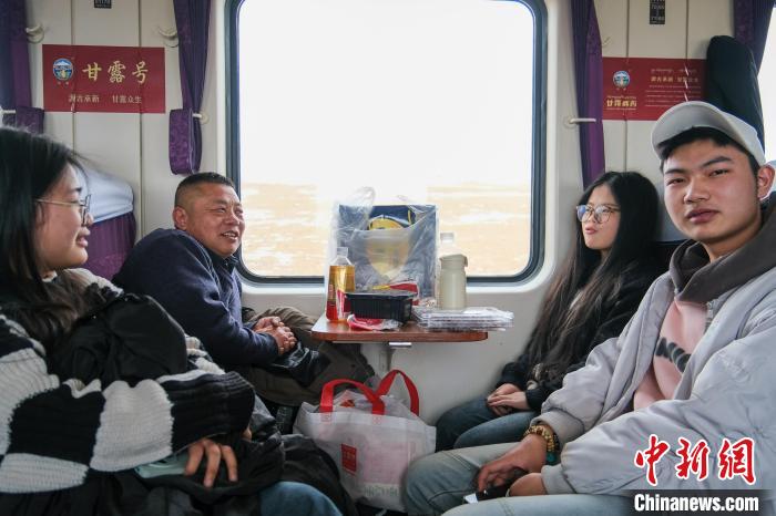 2月1日,Z166次列車硬座車廂,幾位首次到西藏旅行的大學(xué)生體驗青藏鐵路。中新社記者 江飛波 攝