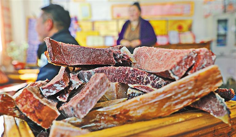 風(fēng)干牦牛肉。記者 格桑倫珠 攝