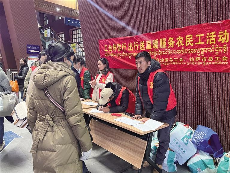 西藏拉薩市總工會(huì)為返鄉(xiāng)農(nóng)民工開展志愿服務(wù)