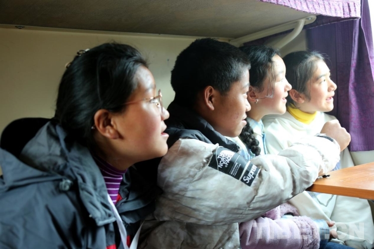 還有一到飯點(diǎn)就來(lái)詢問(wèn)孩子們?cè)趺闯燥埖牧熊噯T、和孩子們一起跳鍋莊的游客、主動(dòng)分享零食的小妹妹……同學(xué)們?cè)诨疖嚿系慕?jīng)歷,讓帶隊(duì)老師次仁羅布不禁感嘆,孩子們第一次出遠(yuǎn)門,還沒(méi)到目的地就已經(jīng)深切地感受到中華民族一家親的濃厚氛圍,真是非常幸運(yùn)。