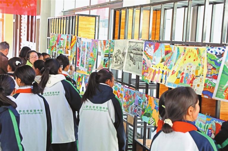 圖為拉薩北京實(shí)驗(yàn)中學(xué)學(xué)生參觀書畫展。記者 格桑倫珠 攝