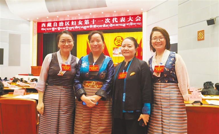 圖為卓瑪(左一)參加西藏自治區(qū)婦女第十一次代表大會時與其他代表合影。