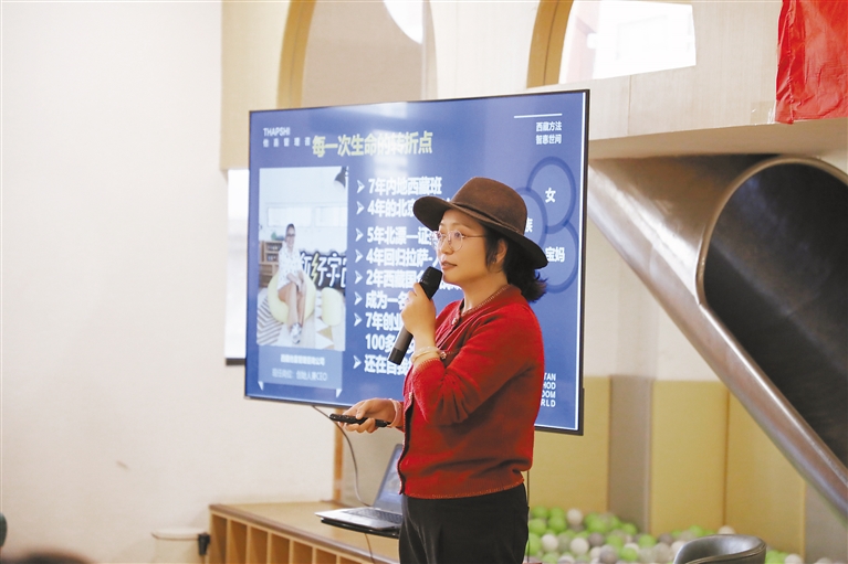 圖為卓瑪向大學生和農牧民創(chuàng)業(yè)者分享創(chuàng)業(yè)經(jīng)驗。