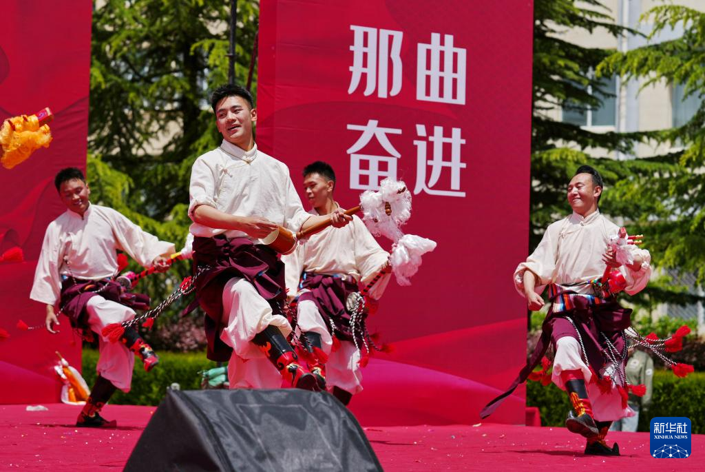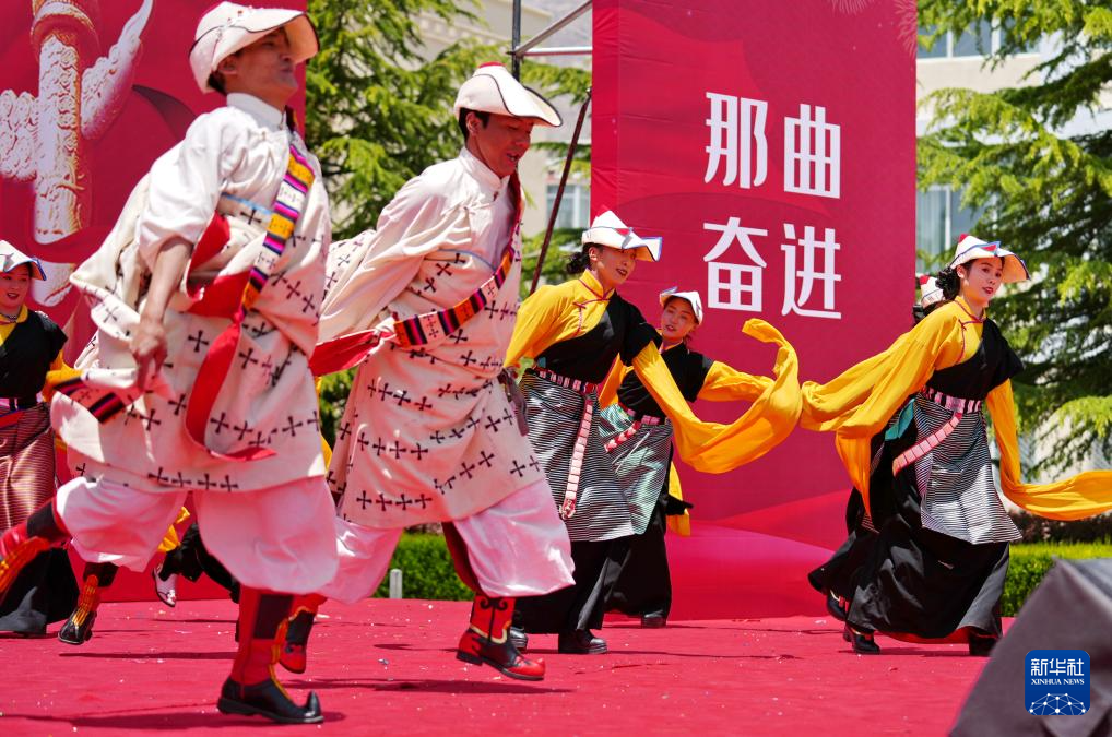 5月12日,在西藏職業(yè)技術(shù)學(xué)院職業(yè)教育活動周啟動儀式暨比如縣非物質(zhì)文化遺產(chǎn)進校園活動上,比如縣民族藝術(shù)團的演職人員在表演節(jié)目。新華社發(fā)(趙大志攝)
