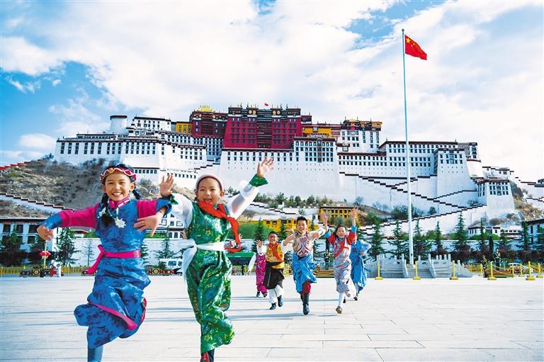 圖為6月1日,小朋友們在拉薩布達(dá)拉宮廣場玩耍。新華社發(fā)(旦增努布 攝)
