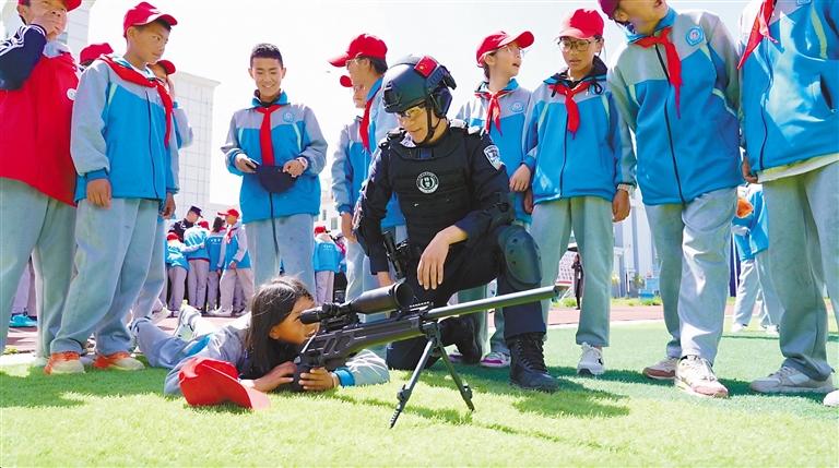 圖為巴宜區(qū)中學(xué)學(xué)生在特警隊員指導(dǎo)下沉浸式體驗(yàn)警用裝備。惠盼宏 記者 彭琦 攝