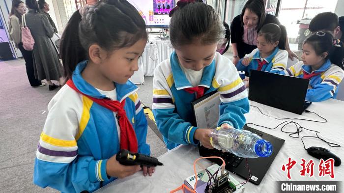 圖為西藏自治區(qū)拉薩市城關區(qū)海城小學的學生正在學習“AI創(chuàng)客”的課程。澤塔雍措攝