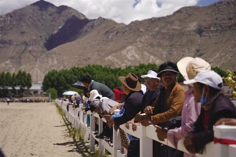 說起西藏的民族傳統(tǒng)體育項(xiàng)目,很多人都會(huì)想到“抱石”“賽?!边@類運(yùn)動(dòng)。本屆運(yùn)動(dòng)會(huì)抱石頭比賽在賽馬場(chǎng)舉行,現(xiàn)場(chǎng),選手們沉著冷靜,許多人都是先圍著石頭轉(zhuǎn)一圈,仔細(xì)打量,身體半蹲后再慢慢抱起石頭。抱石頭非常考驗(yàn)選手的力量和忍耐力,現(xiàn)場(chǎng)也有選手因體能消耗過多,抱起石頭至腹部后放棄比賽。