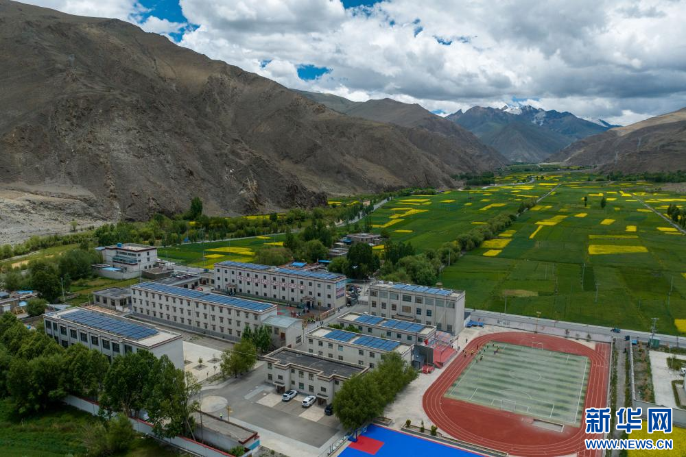 6月21日拍攝的乃東區(qū)亞堆鄉(xiāng)小學(xué)全貌(無(wú)人機(jī)照片)。新華網(wǎng) 旦增努布 攝