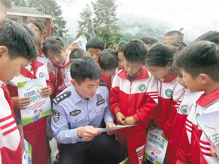 墨脫縣格當(dāng)鄉(xiāng)邊境派出所民警為格當(dāng)鄉(xiāng)小學(xué)的師生們講解禁毒小知識(shí)。記者 王敏 通訊員 郎玲 攝