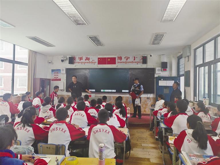 拾金不昧好少年,傳遞雷鋒正能量。為弘揚(yáng)青少年拾金不昧的美德,南郊便民警務(wù)站民警與校方商量后,決定在課間舉辦一個(gè)“特殊”的儀式,對(duì)次仁扎西進(jìn)行當(dāng)眾表彰,用實(shí)際行動(dòng)向社會(huì)傳遞正能量。