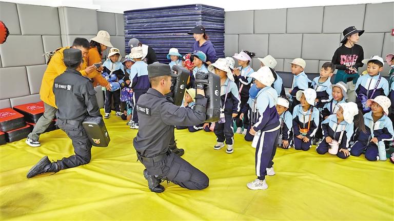 日前,山南市公安局第五黨支部聯(lián)合乃東區(qū)瓊嘎頂社區(qū)舉辦以“金色童年 警民共建”為主題的警營開放日活動,邀請瓊嘎頂社區(qū)共駐共建單位代表、社區(qū)工作人員、山南市第四實驗幼兒園師生等走進特警警營,體驗特警支隊民警的工作與生活。旨在進一步推進城市黨建引領基層治理工作,助力打造區(qū)域化黨建聯(lián)建綜合體建設,進一步構建和諧警民關系。