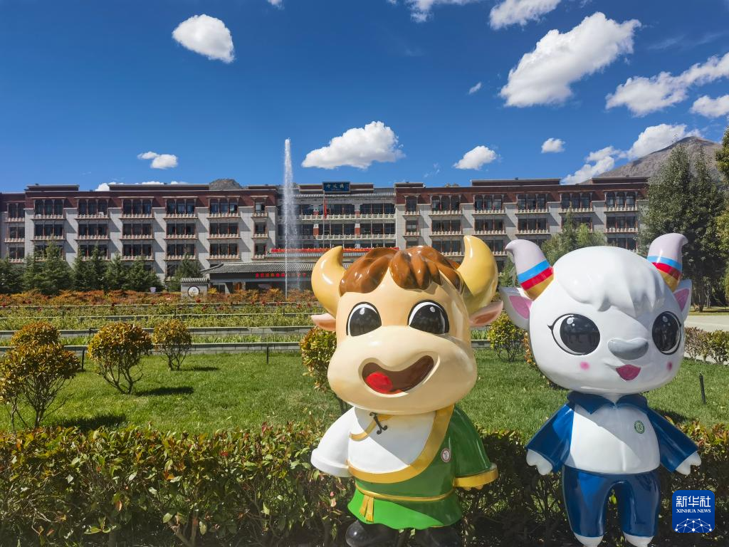 圖為拉薩北京實驗中學(xué)學(xué)生自己設(shè)計的校園吉祥物“牛小特”和“小京羚”。 新華社記者舒靜 攝