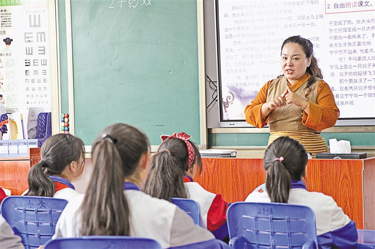 在昌都市特殊學(xué)校的課堂上,有一位老師以她獨特的方式詮釋著教育的意義。她就是澤巴卓嘎,一位被孩子們親切稱為“心靈引路人”的特殊學(xué)校教師。課堂上,她像一位舞者,優(yōu)雅靈動,用手語與聽障的孩子們交流,仿佛在傳遞一曲無聲的樂章。