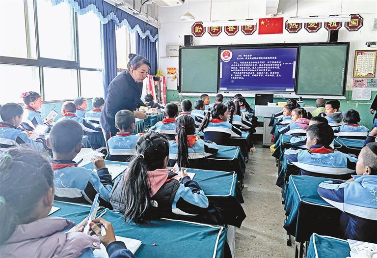圖為檢察官在教室內為學生講解法律知識。記者 旦增嘎瓦 攝