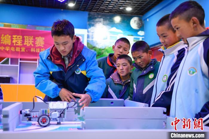 10月25日,在西藏自治區(qū)那曲市聶榮縣中學(xué),學(xué)生展示計(jì)算機(jī)編程作品。中新社記者 貢嘎來(lái)松 攝