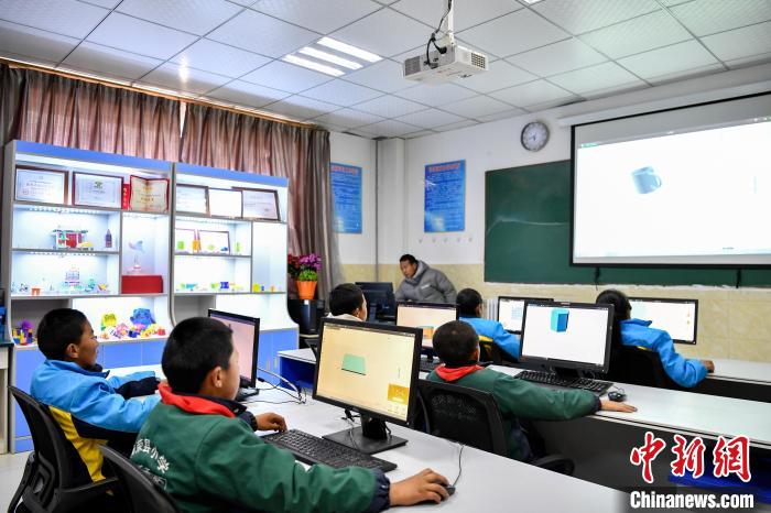 10月25日,在西藏自治區(qū)那曲市聶榮縣中學(xué),學(xué)生在老師的帶領(lǐng)下學(xué)習(xí)3D建模。中新社記者 貢嘎來(lái)松 攝