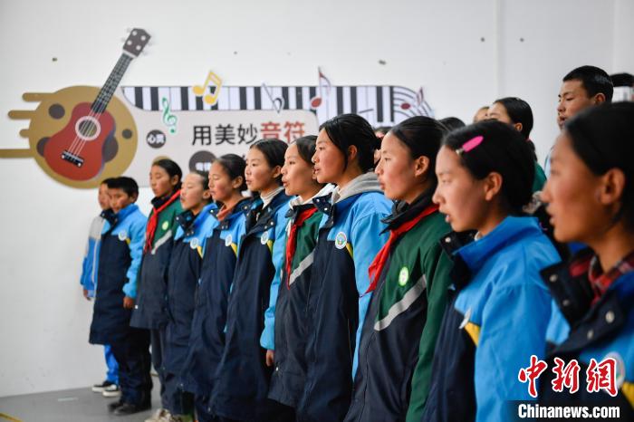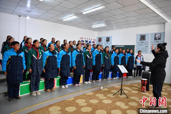 10月25日,在西藏自治區(qū)那曲市聶榮縣中學(xué),學(xué)生在老師的帶領(lǐng)下學(xué)習(xí)合唱。中新社記者 貢嘎來(lái)松 攝