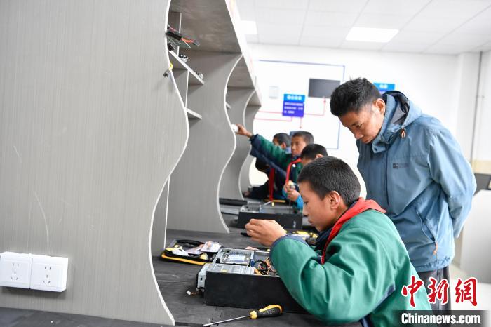 10月25日,在西藏自治區(qū)那曲市聶榮縣中學(xué),學(xué)生在老師的帶領(lǐng)下學(xué)習(xí)舊電腦拆裝。中新社記者 貢嘎來(lái)松 攝