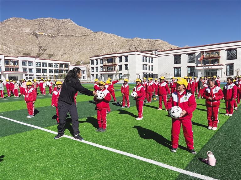 11月14日,“公益體彩 快樂操場”捐贈活動在拉薩師范高等專科學(xué)校附屬小學(xué)舉行。全國女子自由式摔跤冠軍尼瑪拉姆和國家級摔跤裁判員索朗德吉親臨現(xiàn)場,為孩子們送上了一份快樂體育大禮包。