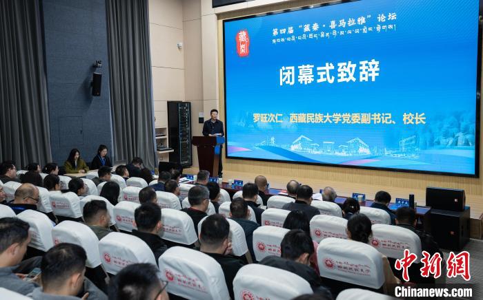 西藏民族大學(xué)黨委副書記、校長羅旺次仁在第四屆“藏秦·喜馬拉雅”論壇閉幕式上發(fā)表致辭。 主辦方供圖
