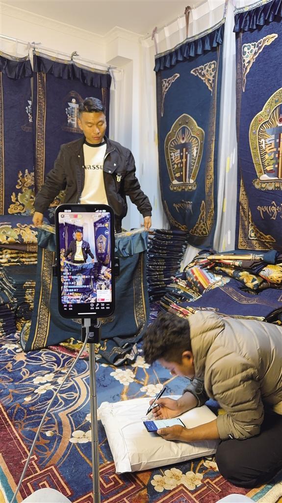 此后,為提升直播效果,格桑平措團(tuán)隊(duì)認(rèn)真總結(jié)經(jīng)驗(yàn)教訓(xùn),不斷學(xué)習(xí)直播技巧,深入研究產(chǎn)品賣點(diǎn),從吸引觀眾、介紹產(chǎn)品到處理售后問題,每個(gè)環(huán)節(jié)都認(rèn)真鉆研。同時(shí),他們精心策劃每一場(chǎng)直播,不僅詳細(xì)介紹產(chǎn)品,還講述產(chǎn)品背后的文化故事,力求講解生動(dòng)有趣,吸引了不少粉絲關(guān)注。在一次次的嘗試和努力下,藏式門簾在電商平臺(tái)上逐漸打開知名度,銷量穩(wěn)步增長(zhǎng),突破了2000單。面對(duì)取得的銷售成績(jī),格桑平措也在不斷思考:“直播帶貨不僅拓寬了產(chǎn)品銷路,更重要的是,通過直播我們能與消費(fèi)者實(shí)時(shí)互動(dòng),了解他們的需求和反饋,從而持續(xù)優(yōu)化產(chǎn)品和服務(wù),讓我們的創(chuàng)業(yè)之路走得更穩(wěn)?!背辈ж浲猓裆F酱雸F(tuán)隊(duì)還借助短視頻平臺(tái)和社交媒體平臺(tái),發(fā)布產(chǎn)品信息,制作精美的宣傳視頻,吸引了更多潛在客戶的目光。