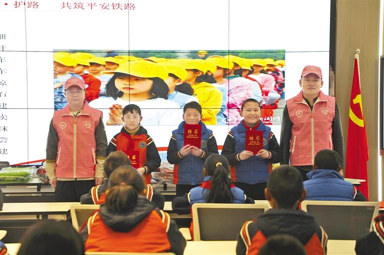 圖為“聘請”學(xué)生代表擔(dān)任“愛路護路小衛(wèi)士”。記者 劉斯宇 攝