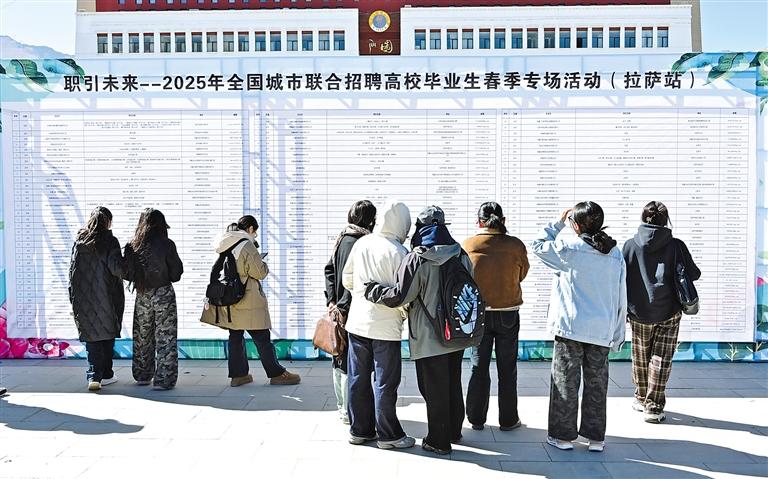 近日,由拉薩市人力資源和社會(huì)保障局主辦,西藏大學(xué)、西藏民族大學(xué)協(xié)辦的2025年全國(guó)城市聯(lián)合招聘高校畢業(yè)生春季專場(chǎng)活動(dòng)在西藏大學(xué)納金校區(qū)舉行。招聘會(huì)提供了文秘、出納、會(huì)計(jì)、醫(yī)輔、客服等1650個(gè)崗位,吸引了不少學(xué)生前來(lái)應(yīng)聘。