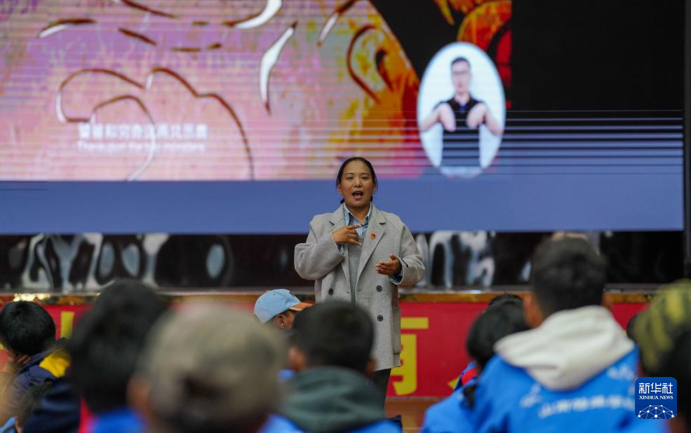 4月17日,西藏山南市特殊教育學校手語老師向聽障孩子們介紹當日活動內(nèi)容。新華社記者 晉美多吉 攝