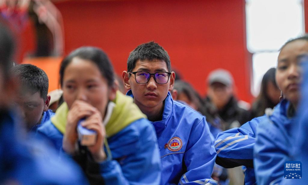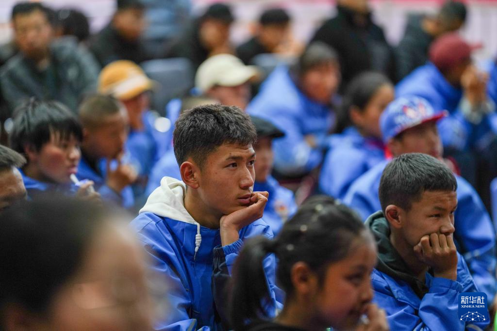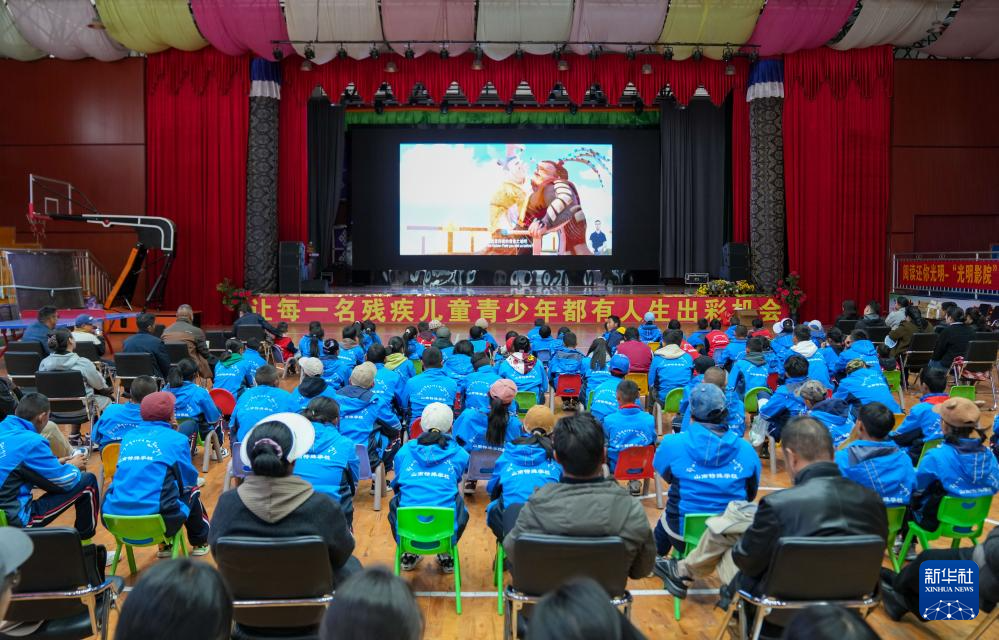 4月17日,西藏山南市特殊教育學校師生觀看無障礙電影《神筆馬良》。新華社記者 晉美多吉 攝