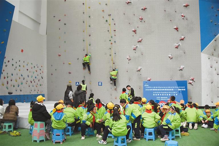 為促進(jìn)學(xué)生全面發(fā)展,近日,由自治區(qū)體育局主辦的“攀巖項(xiàng)目進(jìn)校園”活動(dòng)在拉薩市城關(guān)區(qū)第二小學(xué)舉行?;顒?dòng)中,專業(yè)教練講解了攀巖運(yùn)動(dòng)的基本知識(shí)、技巧以及安全注意事項(xiàng),學(xué)生們?cè)谧龊帽Wo(hù)措施后,分組攀上模擬巖壁,體驗(yàn)攀登帶來的樂趣。