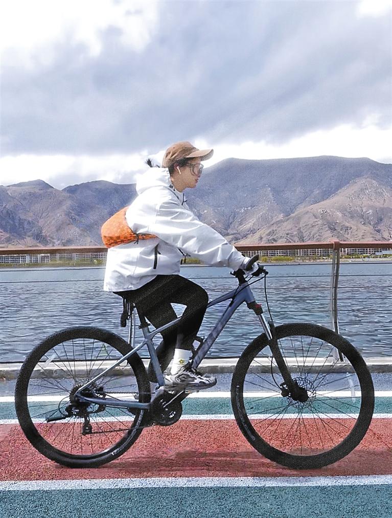 早上9時(shí)許,拉薩市區(qū)的街道也漸漸喧鬧起來。54歲的旦增克珠身著專業(yè)騎行服,在非機(jī)動(dòng)車道上愜意地蹬著自行車?!疤鞖庠絹碓绞娣耍徽撈匠I习噙€是周末去宗角祿康公園跳舞,我都會(huì)選擇騎自行車出行。”