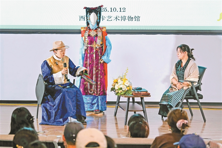2025年10月,在西藏唐卡藝術(shù)博物館,班珠丹塔(左)與中國藏學研究中心的研究員次仁央宗合作主講《霓裳藏韻:衛(wèi)藏古典服飾里的文化、禮制與時代流變》。