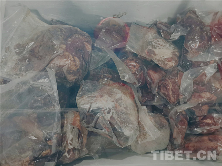 圖為西藏產品展區(qū)冰柜里的牦牛肉 攝影:王茜