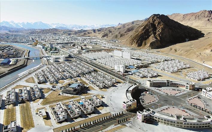 圖為阿里地區(qū)獅泉河鎮(zhèn)康樂新居易地扶貧搬遷安置點全景。記者 洛桑旦增 攝